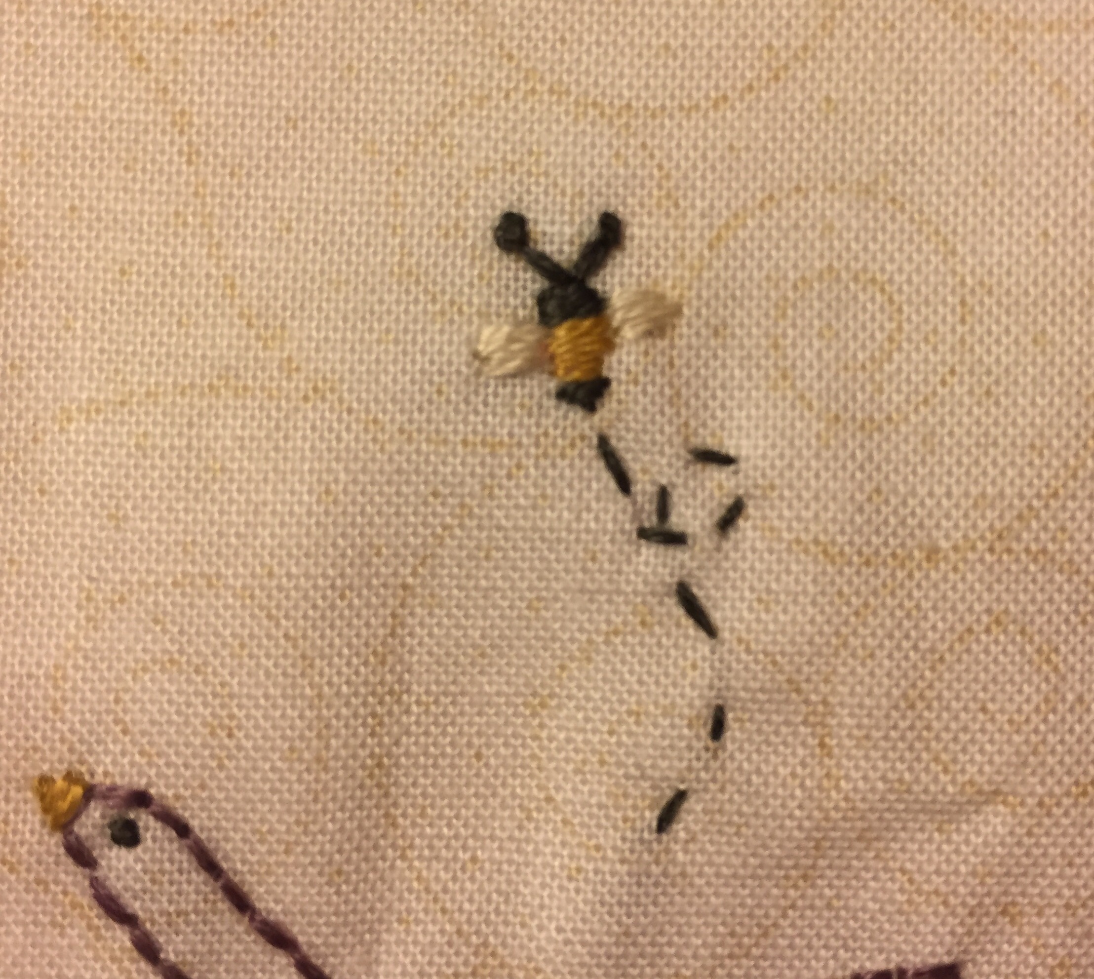 abeja bordada a mano