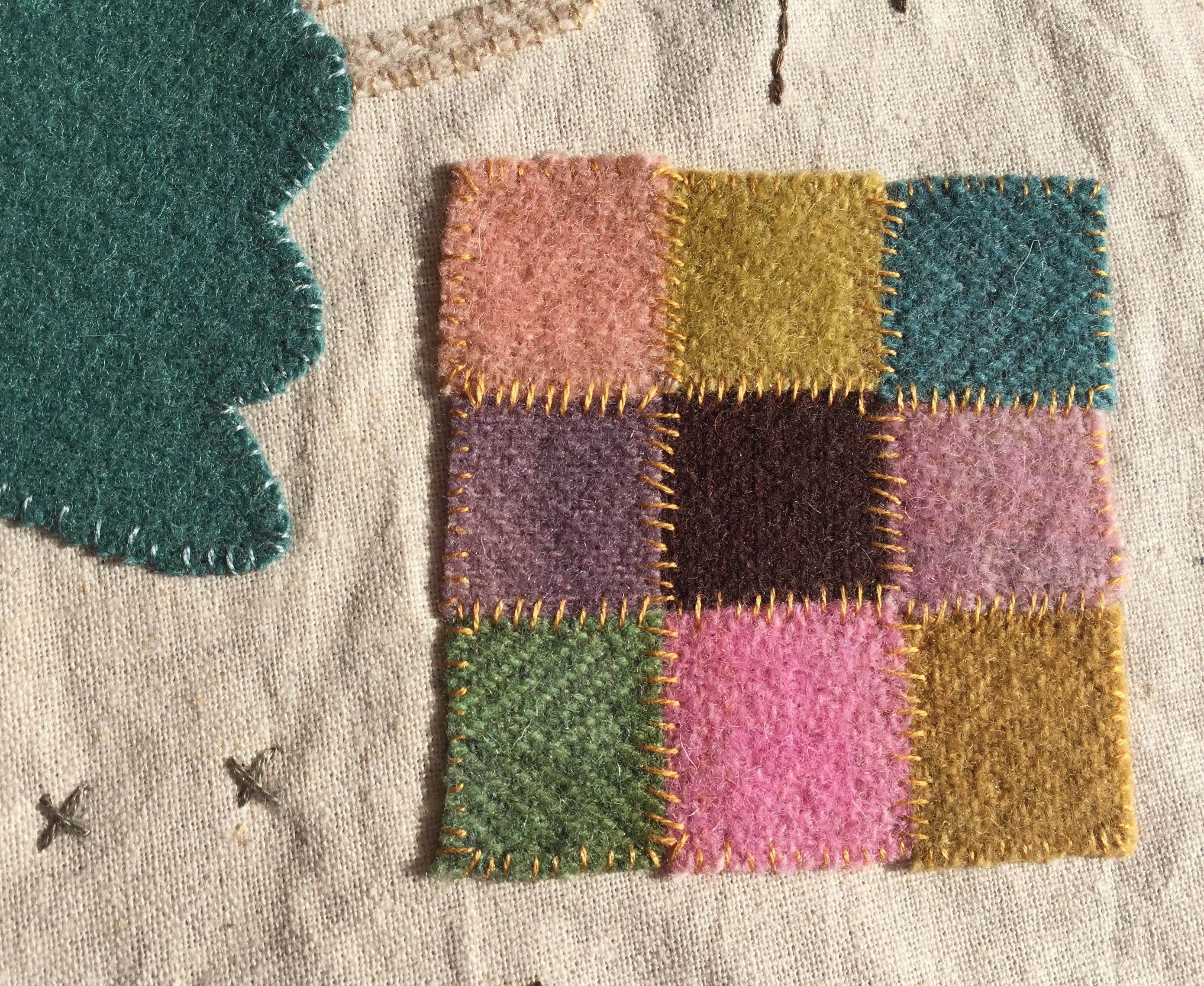 técnica aplicaciones de lana en patchwork